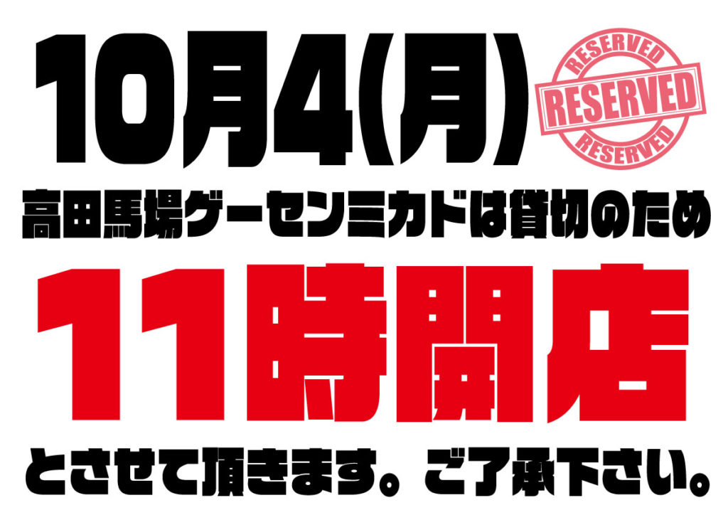 高田馬場ゲーセンミカド開店時間変更のお知らせ