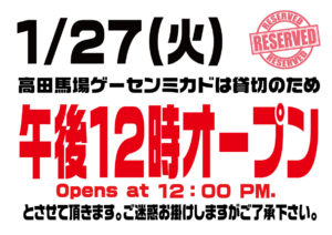 1/27(火)高田馬場店は12時オープン